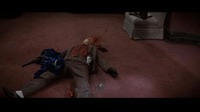 Un taxi l’y conduit. Une fois à l’intérieur, il découvre une bien étrange scène : le policier corrompu, apparemment tué depuis peu, se tient encore debout cependant que le mari de Dorothy gît mort, l’oreille coupée. Jeffrey quitte l’appartement mais il voit Franck, déguisé et menaçant monter l’escalier. Jeffrey prévient alors l’inspecteur Williams de la situation en se servant de la radio de l’inspecteur Gordon à qui il prend son pistolet. Mais Franck qui possède une radio de policier a entendu que Jeffrey s’est caché dans le placard. Sur le point d’être découvert, Jeffrey fait feu à bout portant sur Franck. L’inspecteur Williams et Sandy arrivent à ce moment-là. [116ème mn]