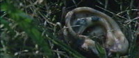 On signalera enfin l’art si élaboré du réalisateur toujours soucieux d’enrichir son film de scènes qui surprennent mais sont toujours autant de signes à déchiffrer de ce qui se passe ou va se passer. On proposera à titre d’exemples les trois séquences surprenantes qui s’enchaînent immédiatement après la découverte de l’oreille par Jeffrey. C’est, tout d’abord, sur l’écran obscur du fondu au noir qu’il fait se découper le rectangle blanc d’une porte du premier étage que l’on ouvre lentement sur un Jeffrey dont la silhouhette se détache sur le fond clair avant qu’il ne descende l’escalier face à la caméra cependant qu’il quitte la lumière du jour pour l’obscurité du rez-de-chaussée. (4) C’est alors que le regard-caméra quitte Jeffrey qui sort et par un lent mouvement latéral vient fixer l’écran de la télévision dans lequel deux jambes montent un escalier (référence à un classique du film noir).