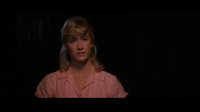 (5) Cette séquence filmant Sandy évoque, à l’évidence, le Vertigo d’Hitchcock [8] dans lequel l’héroïne (Judy-Madeleine) surgit du néant comme une apparition nimbée d’une lueur verte. Ici, Lynch filme, à l’identique, Sandy : il fait d’abord entendre sa voix dans la nuit, avant de la présenter comme si elle naissait littéralement de la nuit. Mais ce fantôme est bénéfique, qui illumine la nuit de sa présence auréolée d’un rose bienveillant.
