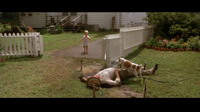Un ciel bleu écru, une clôture de bois d’un blanc immaculé, un camion de pompiers rouge vif, des tulipes jaune d’or, une traversée de rue par des enfants scolarisés, et un fond musical de chanson des années 1960 (1) : nous sommes à Lumberton, une calme petite ville américaine… Dans son jardin bien entretenu, M. Beaumont arrose sa pelouse cependant que sa femme se détend devant un film policier, quand une crise cardiaque le jette à terre dans le désordre du jet d’eau serpentant sous l’effet de la pression et les jappements fous du chien. Peu après, son fils adolescent, Jeffrey, de retour d’une visite au chevet de son père à l’hôpital, découvre une oreille humaine grouillant d’insectes dans l’herbe d’un terrain vague. Il l’apporte à l’inspecteur Williams qui est, par ailleurs, le père d’une ancienne connaissance, Sandy. Le médecin légiste pense que l’oreille a sans doute été coupée à l’aide d’un ciseau sur une personne peut-être vivante. Jeffrey assiste de loin à la fouille méticuleuse du terrain par les policiers. [9ème mn]