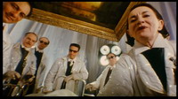 James Cole parcourt la ville, découvre une pancarte empoussiérée proclamant « We did it/On l’a fait. » cependant qu’un lion juché sur le toit d’un immeuble rugit dans la nuit. De retour à sa base, il est dénudé, aspergé de produit désinfectant et méticuleusement nettoyé à la brosse par deux hommes qui lui font ensuite un prélèvement sanguin. Il est ensuite mis en quarantaine. Puis il est conduit devant six Scientifiques (cinq hommes et une femme) en blouse blanche, capables de faire voyager dans le temps, qui – après qu’on l’a attaché sur un siège installé en hauteur - lui proposent une mission impossible à refuser en échange d’une réduction de peine : contribuer à rétablir l’espèce humaine à la surface de la terre. Et pour ce faire, il sera envoyé dans le passé, en 1996, date de l’épidémie, pour rapporter un échantillon du virus à partir duquel un vaccin immunisant pourra être fabriqué. [10mn20]